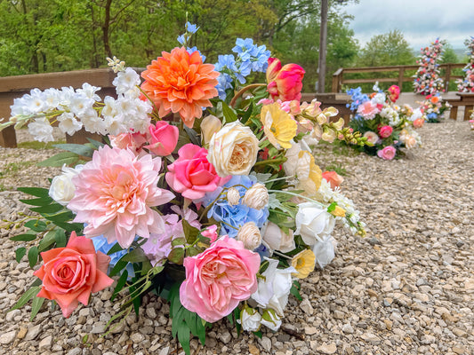 Each floral arch, backdrop, floral pillar, and aisle arrangement is hand crafted with love and attention to detail. We use the highest quality silk florals on the market.