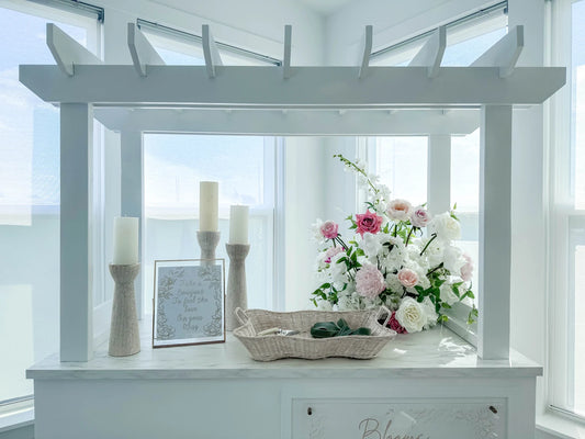 We rent luxurious and timeless arches, pillars, floral walls, bar carts and more.